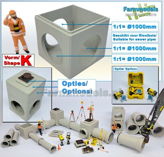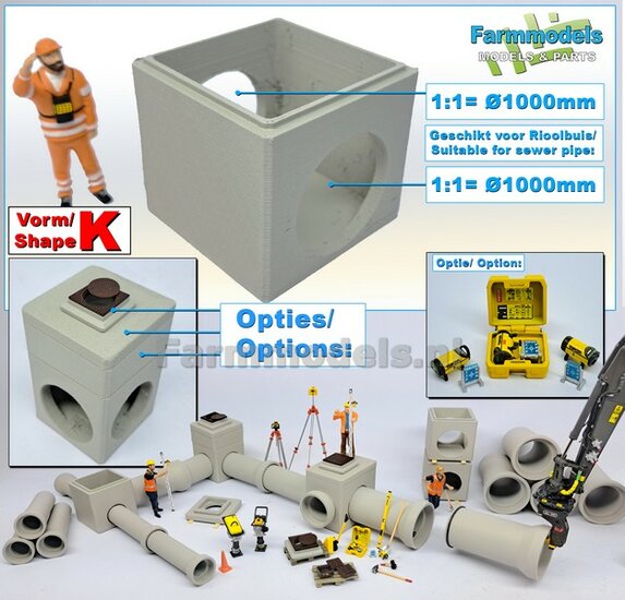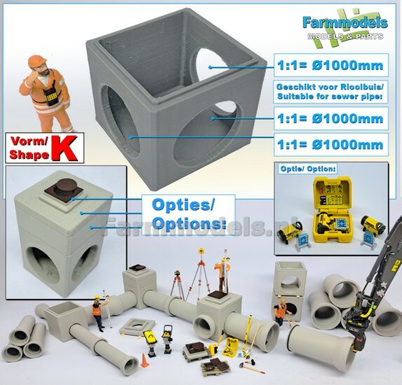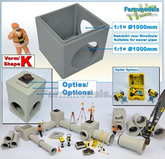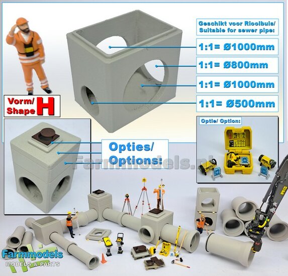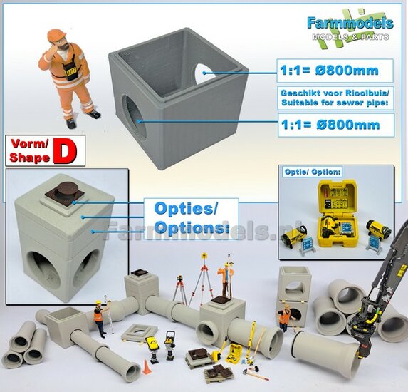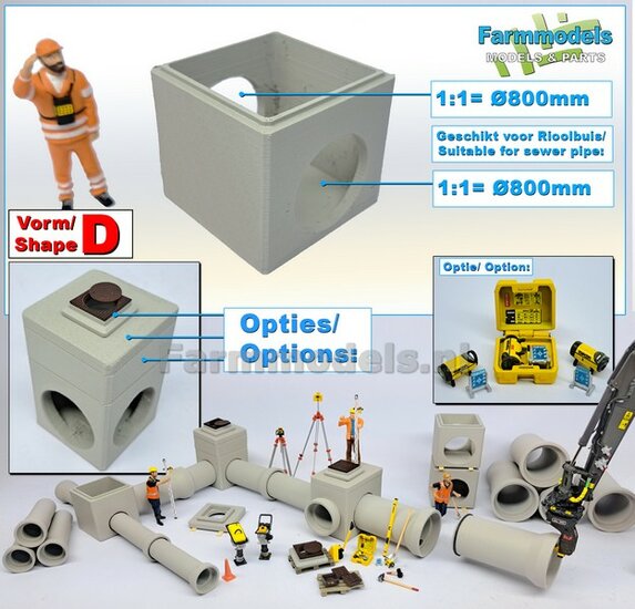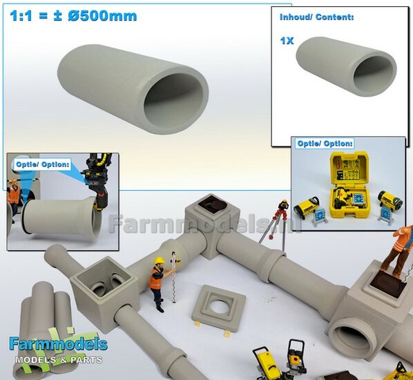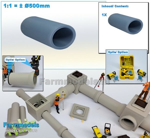 2x RIOOLBUIZEN (Binnenmaat 1:1 = Ø800mm) Materiaal RESIN, BLANK Geleverd 1:32