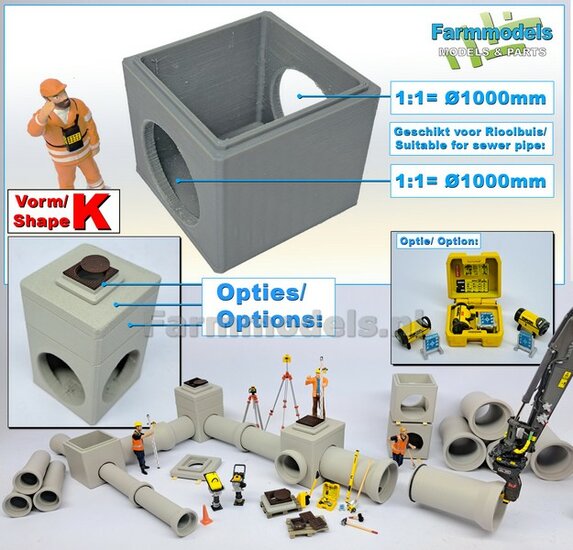 1x RIOOLBUIS (Binnenmaat 1:1 = Ø1000mm) Materiaal RESIN, BLANK Geleverd 1:32