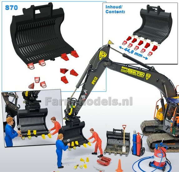 OUTLET: Tandenbak smal t.b.v. S70 koppeling (o.a. Volvo EC220E rupskraan AT) 1:32 MEGASALES