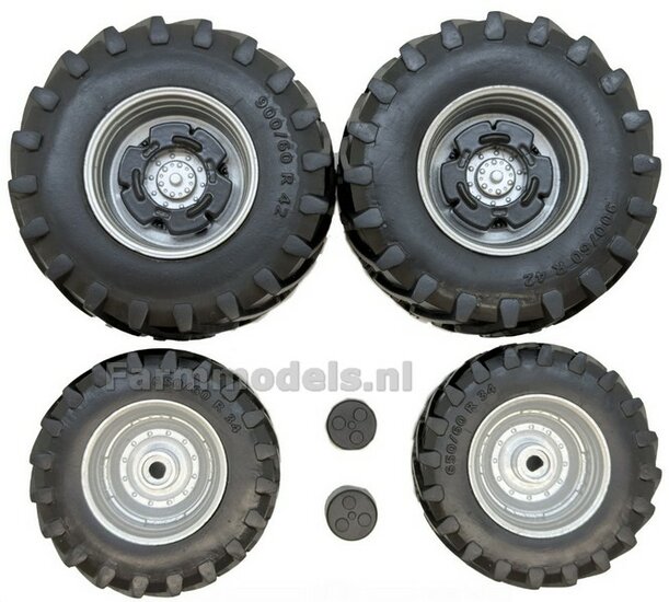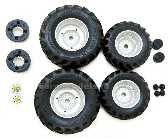 Ø 52.3 mm: Vredestein Traxion 710/60 R34 (vooras) banden Die Cast velgen NH WIT + eindvertraging, 1:32 Universele set