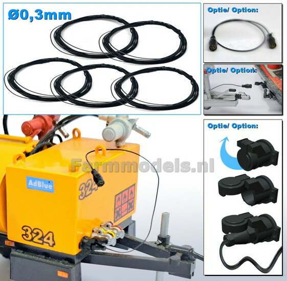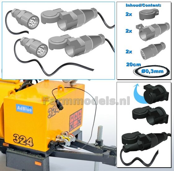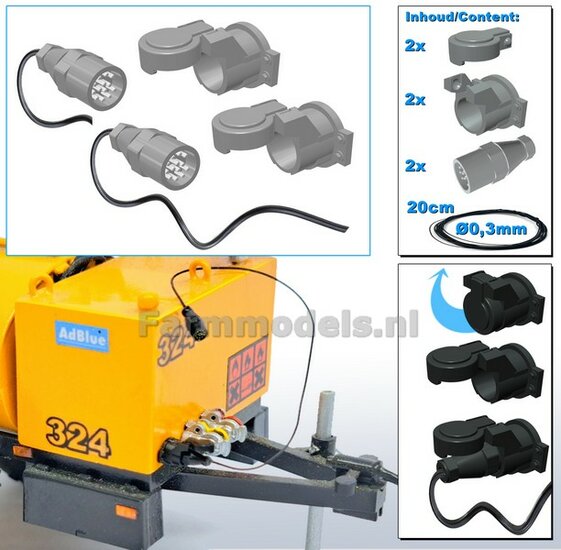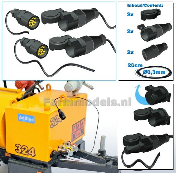 10x 13-Polige STEKKER + VERLICHTINGSKABEL Ø 0.3 mm Materiaal Resin, ZWART MATT Gespoten geleverd + Ø 0.3 mm kabel 1:32