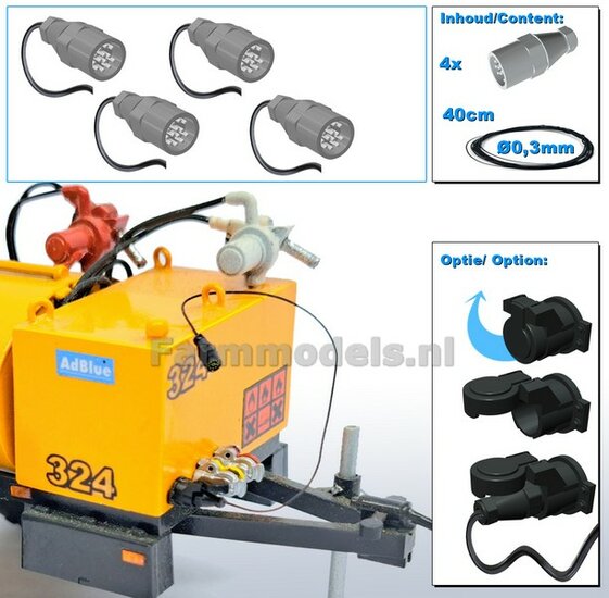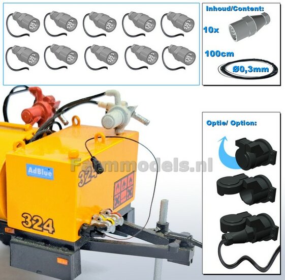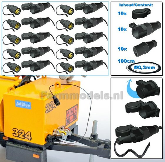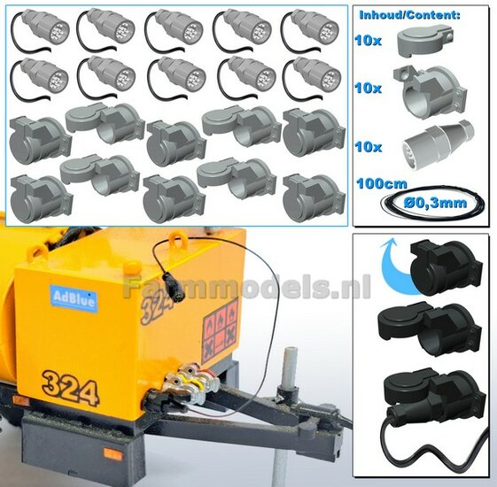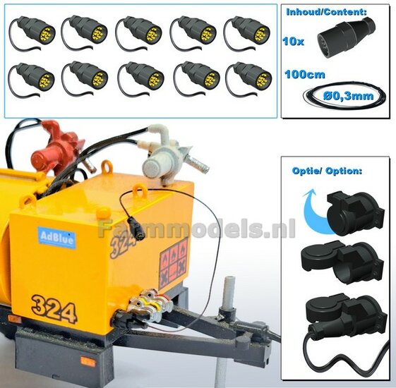 10x 13-Polige STEKKER & 10x CONTACTDOOS + 10x STOFKAPJE + VERLICHTINGSKABEL Ø 0.3 mm Mat: RESIN, BLANK Geleverd + Ø 0.3 mm kabel 1:32