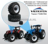 - Vredestein Traxion 710/60 R34 (vooras) banden, Vredestein licht grijs + Die Cast velgen (NH) Wit + eindvertraging Ø 52.3 mm 1:32 Universele set
