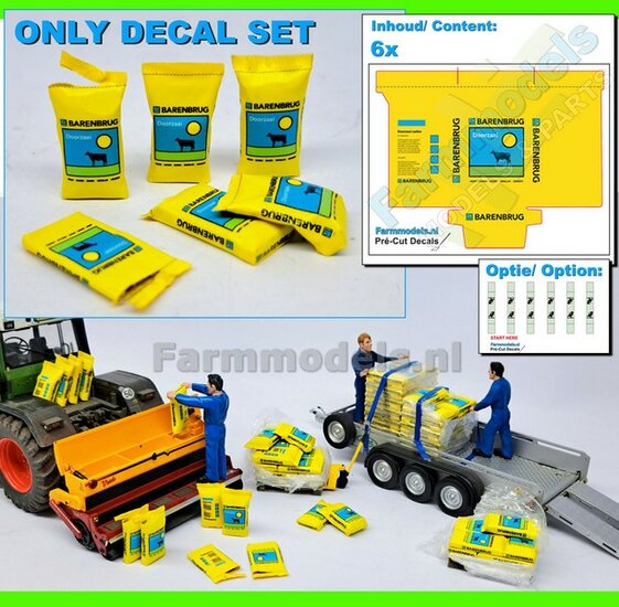Graszaad: BARENBRUG DOORZAAI SET B = 6x volle zakken zaadgoed (3 vormen) + 6x Pré-Cut decal-stickers 1:32