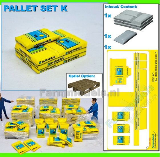 Gestapelde zakken Graszaad: BARENBRUG DOORZAAI SET K = 3 lagen zaadgoed + 1 losse zak + 5x Pré-Cut decal-stickers 1:32