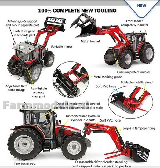 Massey Ferguson 5S.115 + FL.4121 voorlader + FREE GIFT VOORRUIT STICKERSET 1:32 Universal Hobbies UH6603