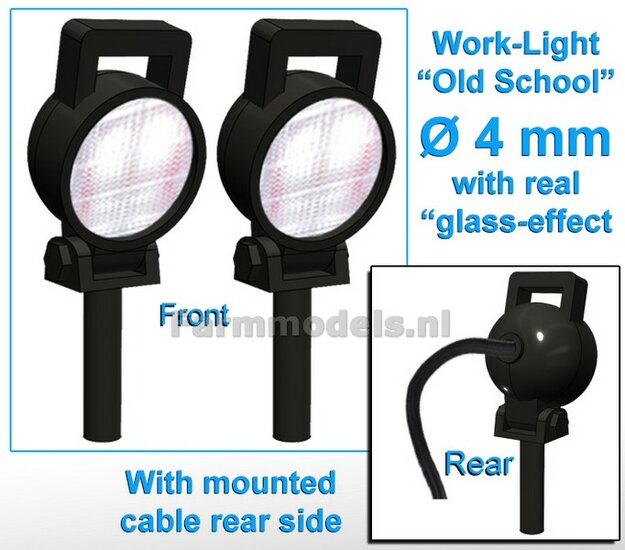 10x Werklampen (5x462846) ROND Ø4 mm, 3D OLd School Glas effect MET Kabel, montage pen ONDERKANT, MET handgreep 1:32 NB2B
