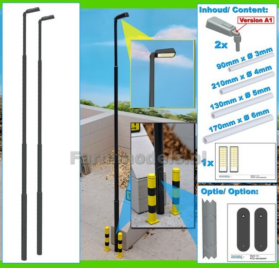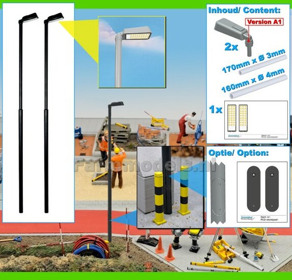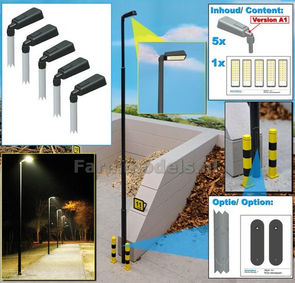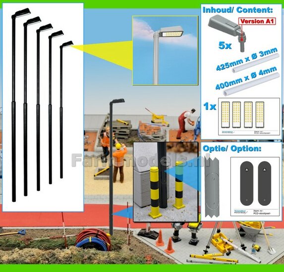 BOUWKIT: 5x ENKEL VERLICHTINGS ARMATUUR VERSIE A1 + LANTAARNPALEN 288mm + 5x Pré-Cut Decals LED VERLICHTING 1:32