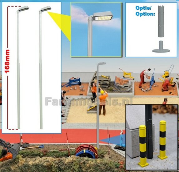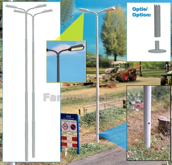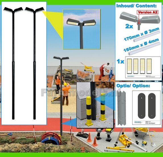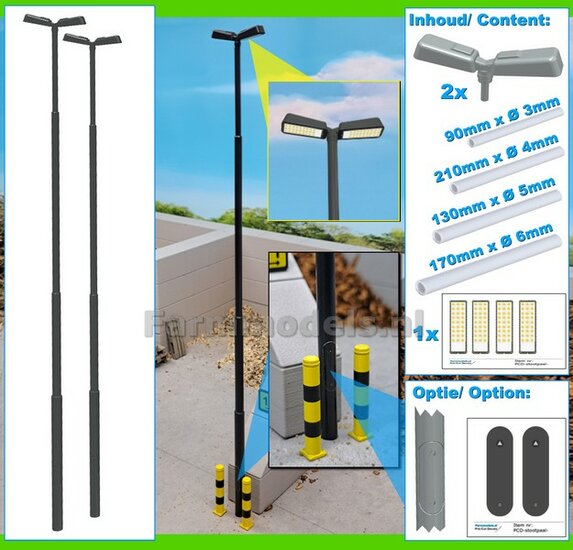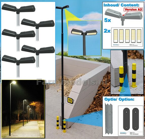 BOUWKIT: 5x DUBBEL VERLICHTINGS ARMATUUR VERSIE A2 + LANTAARNPALEN 168mm + 10x Pré-Cut Decals LED VERLICHTING 1:32