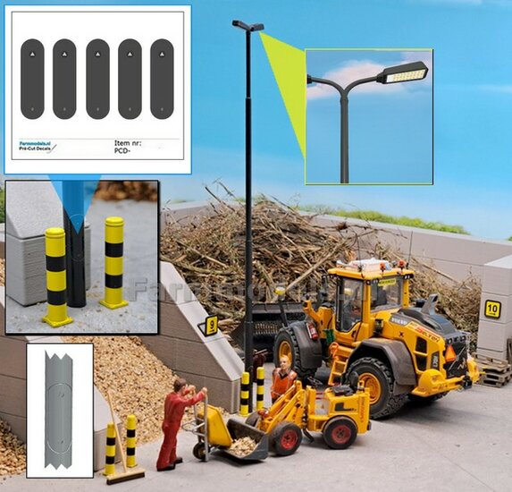 BOUWKIT: 5x DUBBEL VERLICHTINGS ARMATUUR VERSIE A2 + LANTAARNPALEN 288mm + 10x Pré-Cut Decals LED VERLICHTING 1:32