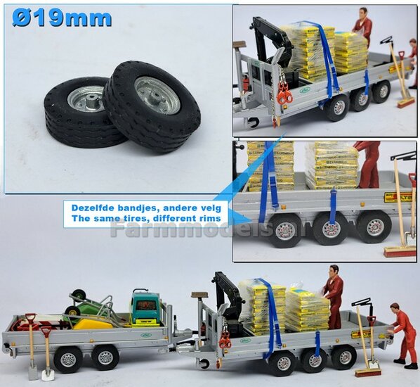 Ø 19 x 6 mm: 2x Aanhanger bandjes RESIN GRIJZE velg met weg profiel fijn 1:32